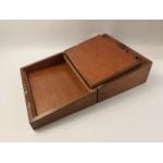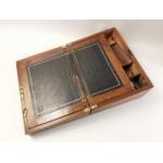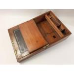 Antique wooden writing box bereft of contents but a super useable item or a nice winter project to remedy the faults. 29 x 22 x 14 cm approx