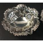 Two silver bonbon dishes on four raised feet, hallmarked, London 1890, by William Comyns and Sons, 13cm diameter approx, standing approx 6cm high, weight 275g