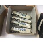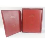 A BRITISH UNITED AIRWAYS desk calendar, a boxed, unused, BOAC cigarette lighter made by Poppell, 2 red leather BOAC 'Letters for Signature' folders, one boxed (both have some foxing), 4 Fly by BOAC penknives (7cm long approx), a boxed BOAC desk pen holders