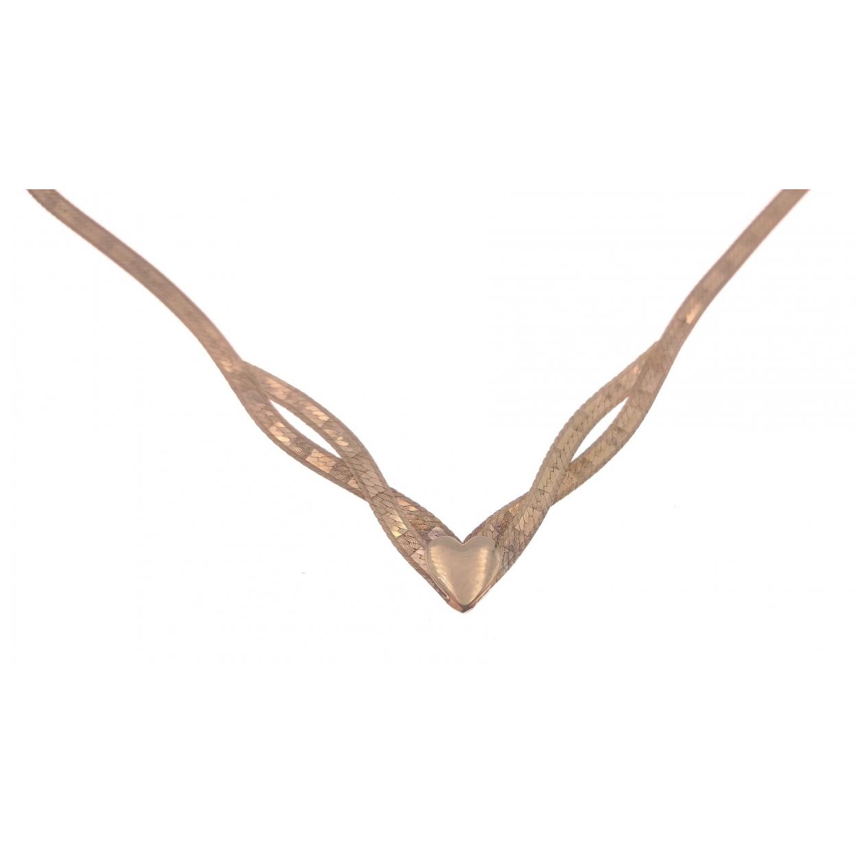 A flat chain necklace stamped 375 with heart at centre, approx 40cm long weight 3.45g