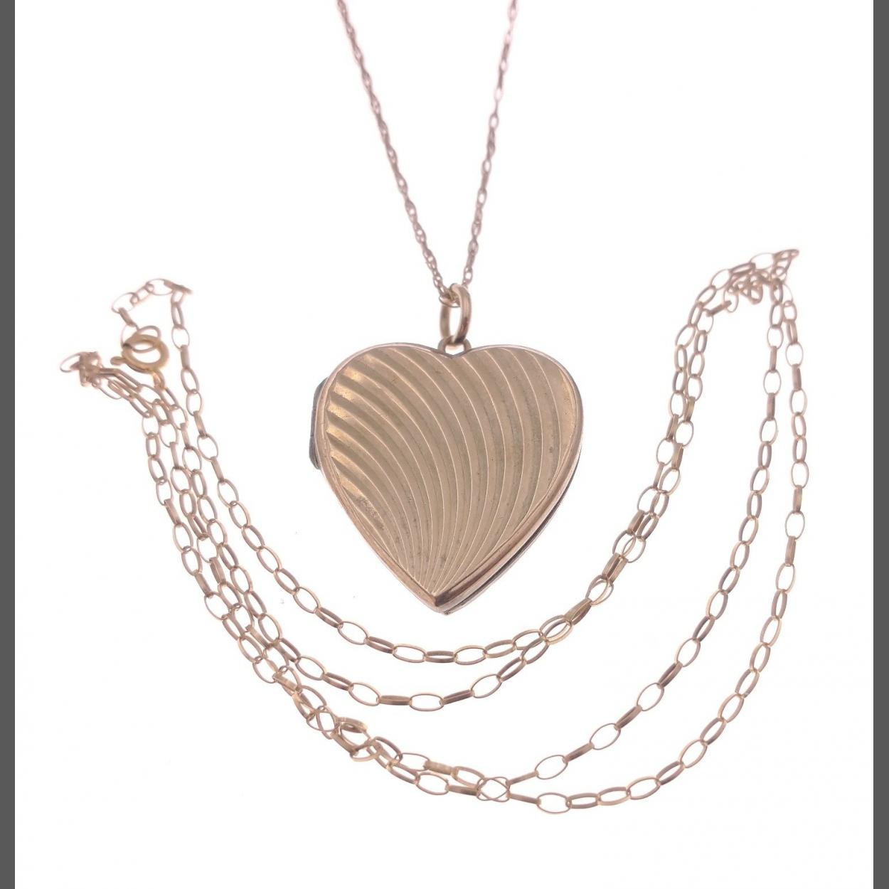 A yellow metal chain stamped 9K with yellow metal heart shaped locket pendant stamped 9ct front and back (plated) and a 9K yellow metal chain approx 46cm long, gross weight 6.1g