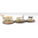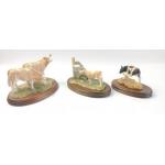 Three BORDER FINE ARTS models, all original Scottish made items to include a pair of Simmental Calves (168) from 1995, a Friesian Calf (JH101) scratching 1995 and a Brown and White Calf (JH82B) 1993 both from the James Herriot series. All complete and undamaged.