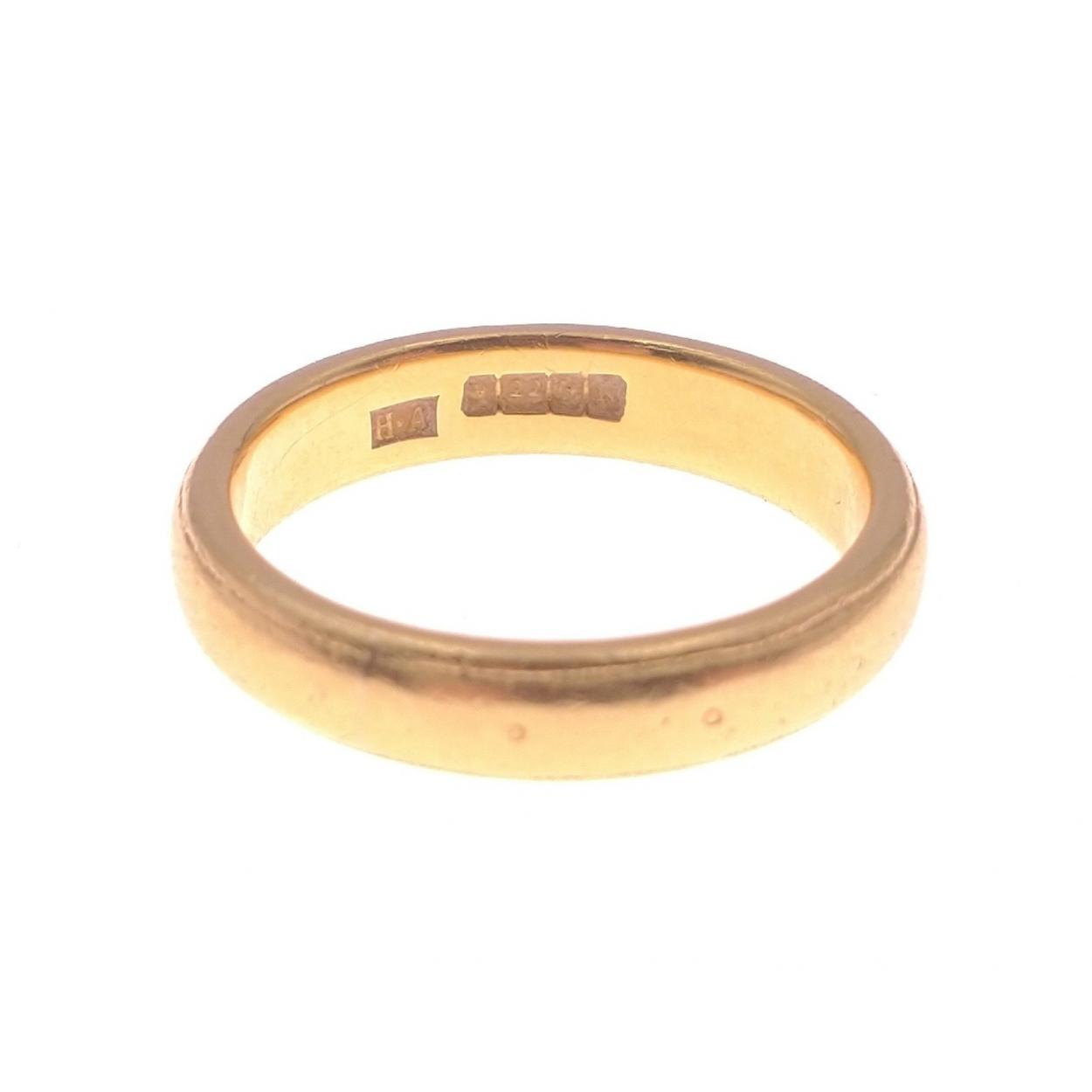 A yellow metal hallmarked (indistinct assay office) ring stamped 22, size N, weight 6.6g approx