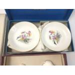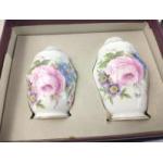 A pair of ROYAL WORCESTER pin dishes in a presentation box, a boxed AYNSLEY cruet set, a vintage urn shaped perfume bottle still retaining stopper