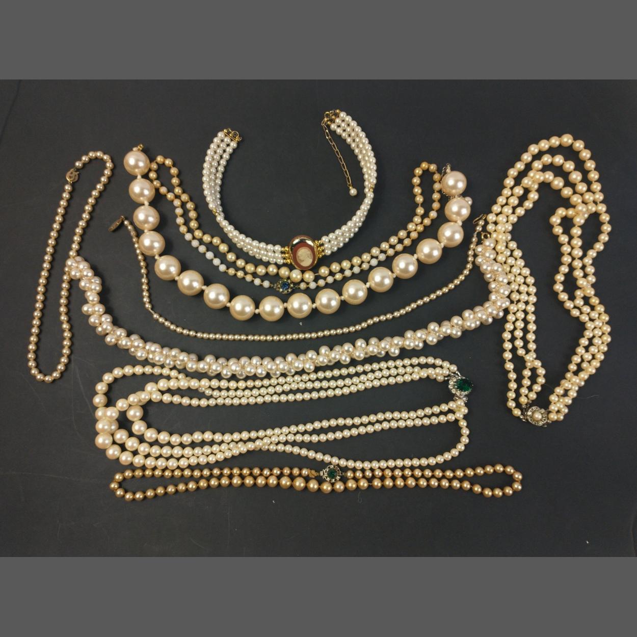 A glorious bundle of faux pearl necklaces and chokers - would add a warm tone to a Christmas tree