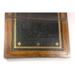 A Victorian wooden writing slope externally in nice aged condition. There is a crack to the lid at the rear and there is internal damage but the Morroco leather is original and the whole presents well. 40 x 24 x 16cm.