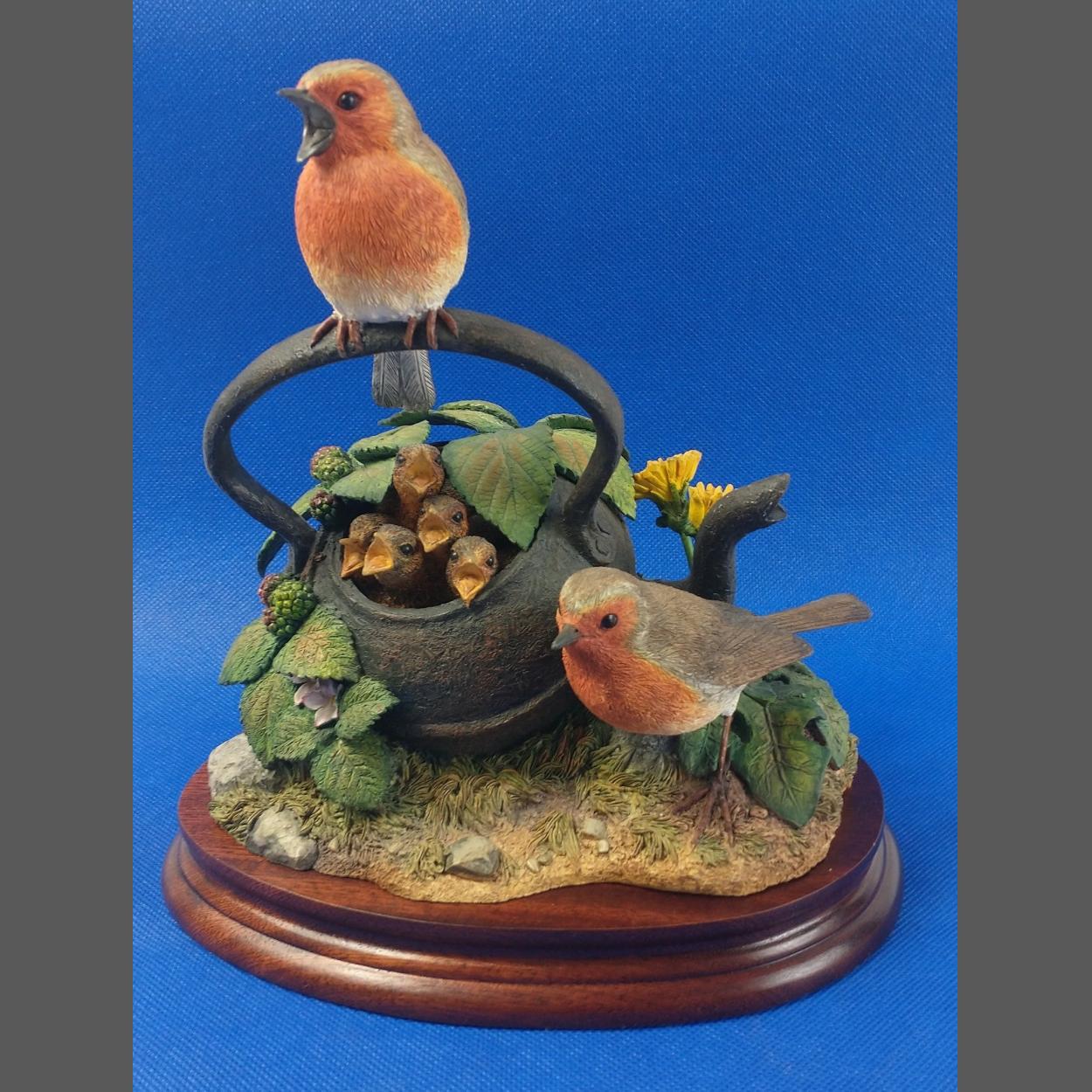 BORDER FINE ARTS B0880 Border Fine Arts "Second Brewed" of Robins in a kettle still in original box and packaging and in good condition with no obvious signs of damage or items missing apart from one half of original packaging