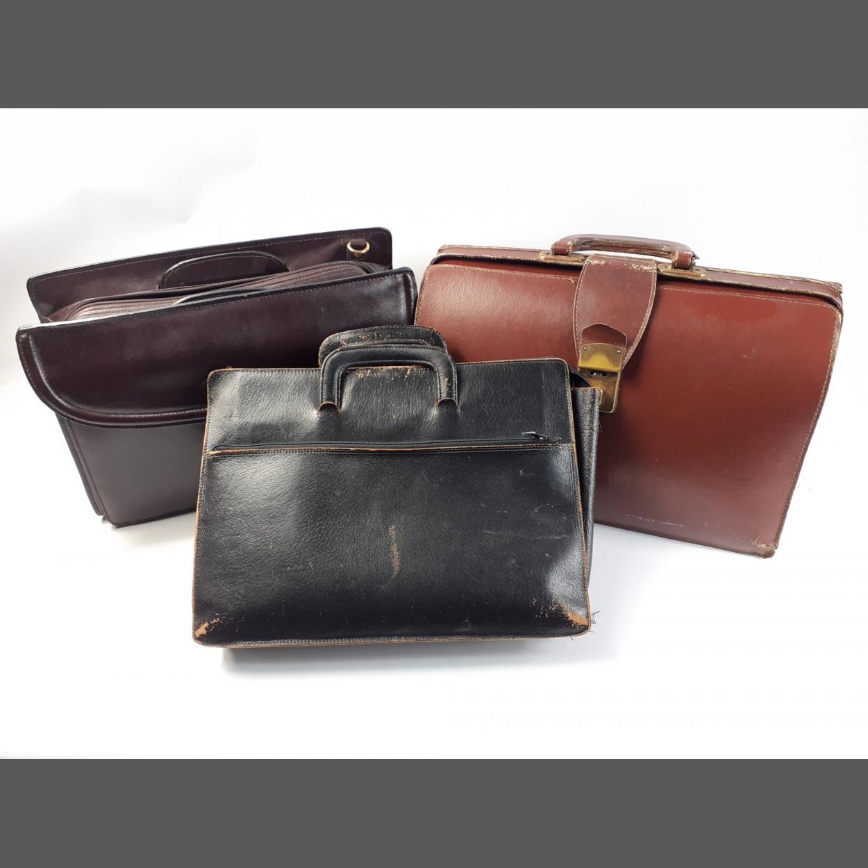 Three leather briefcases, one pilot syle all in good vintage used condition.