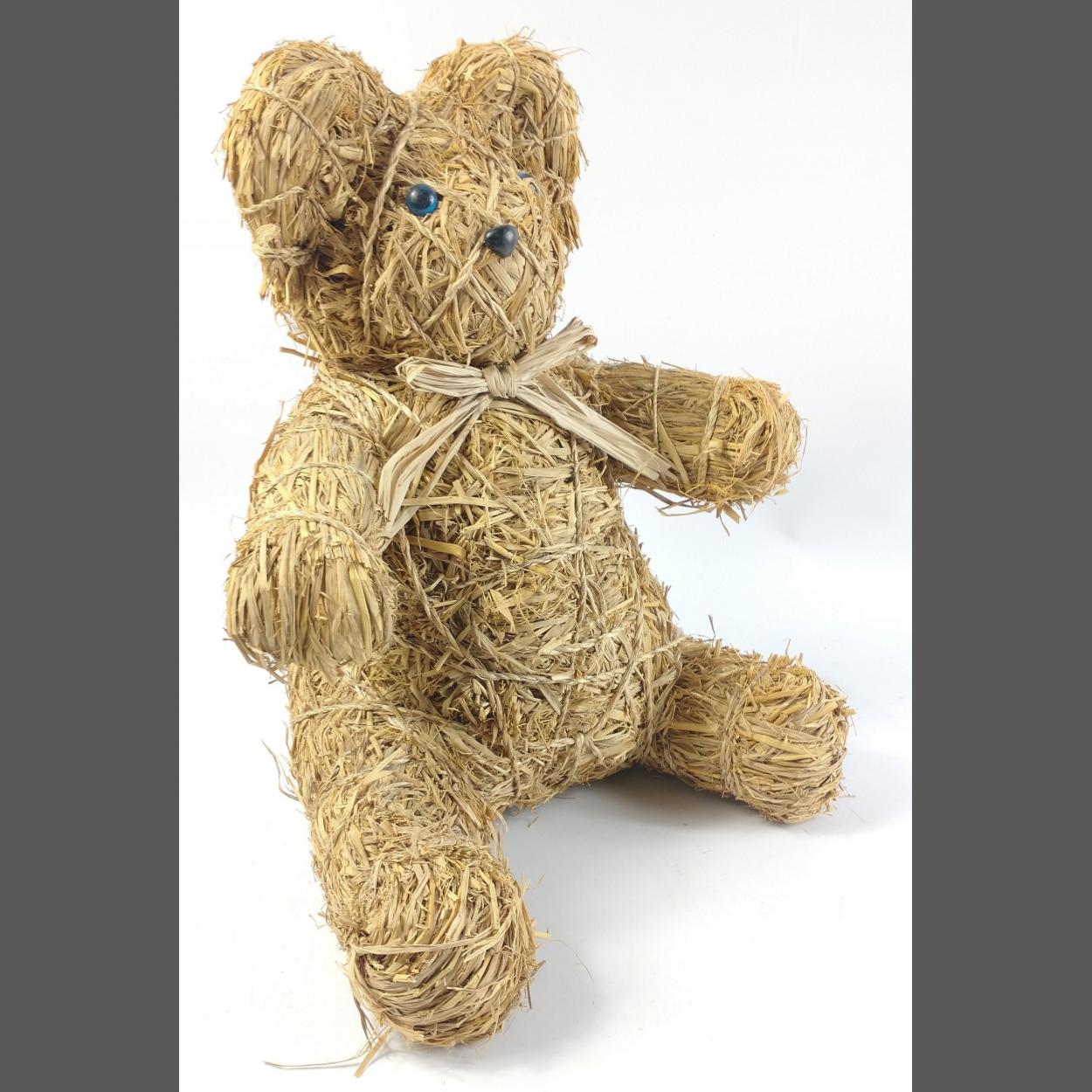 Highly unusual - a straw bale hand-moulded TEDDY BEAR sitting 38cm tall
