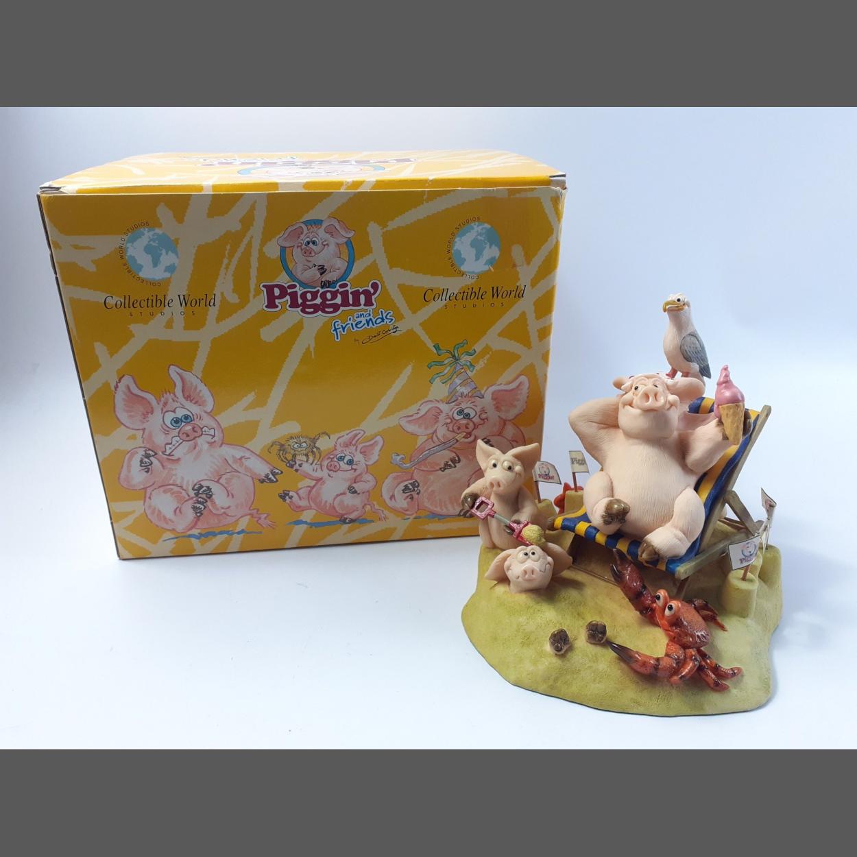 Piggin' Piggy and Friends by David Corbridge. PIGGIN HOLIDAYS Ltd. Edition 3324/3500. Undamaged and in original box. A really appealing and humourous seaside group. A super gift idea.