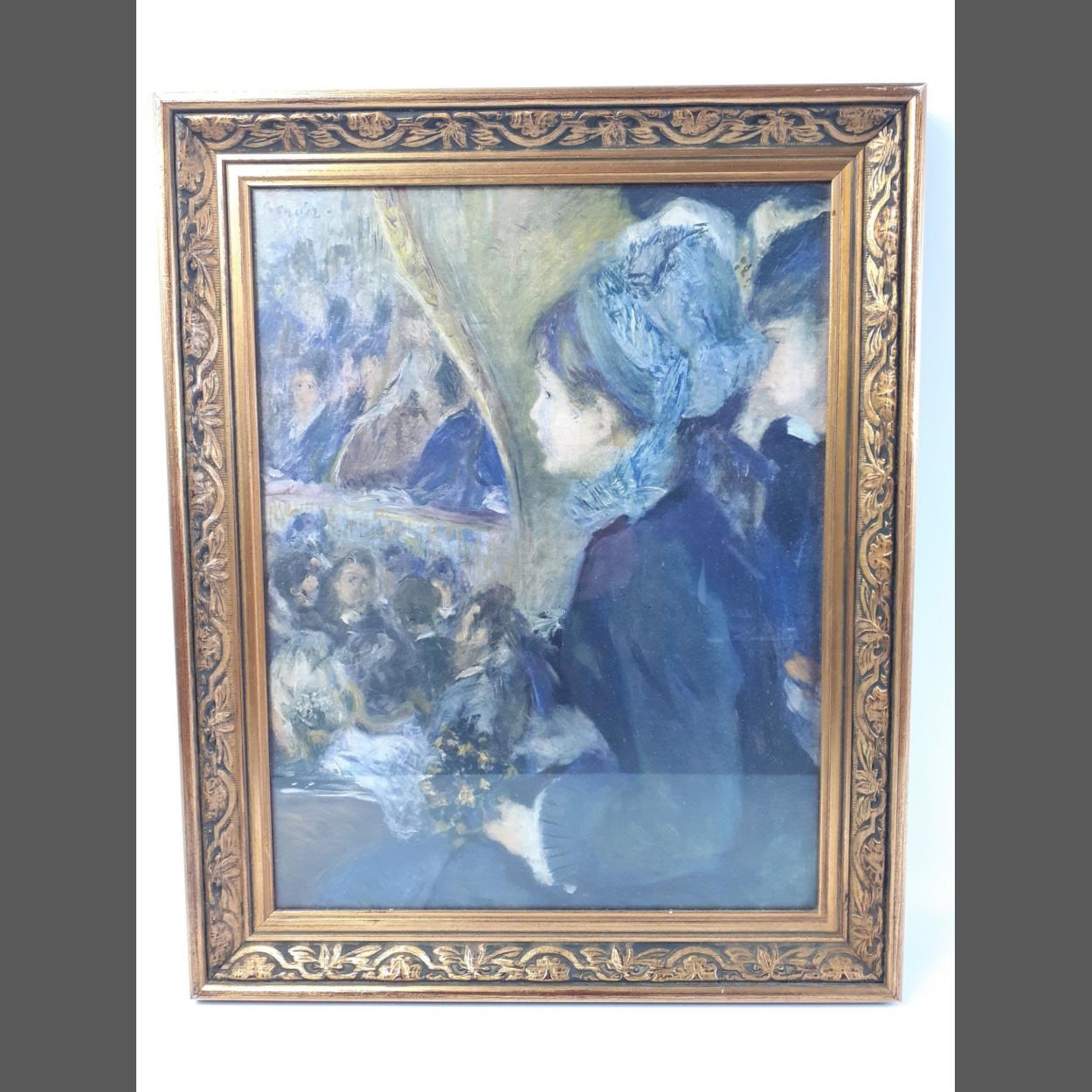 A very nicely presented print by AUGUSTE RENOIR of an attractive young girl with flowers at the theatre, in a light gilt wooden frame with a Medici Society label to the rear. Make an impression in your home. Total frame size 47 x 38cm approx.