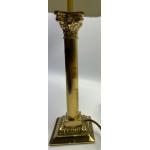 A nice quality brass CORINTHIAN columned table lamp with a quality shade - dimensions of lamp to the tip of the shade measures 64cm tall approx