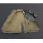 Two pairs of 70 year old 'oil-skins' makers VINCO27 made in Scotland medium sized - one in olive colours and one in mustard colour