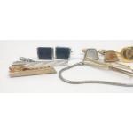 A selection of various cufflinks and tie pins to include a pair of SILVER HALLMARKED cufflinks