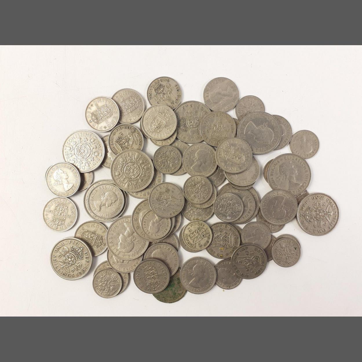 A quantity of United Kingdom low value obsolete cupro nickel currency. Mostly in good condition, an interesting mixture of shillings, half shillings etc. Weight 390g approx.