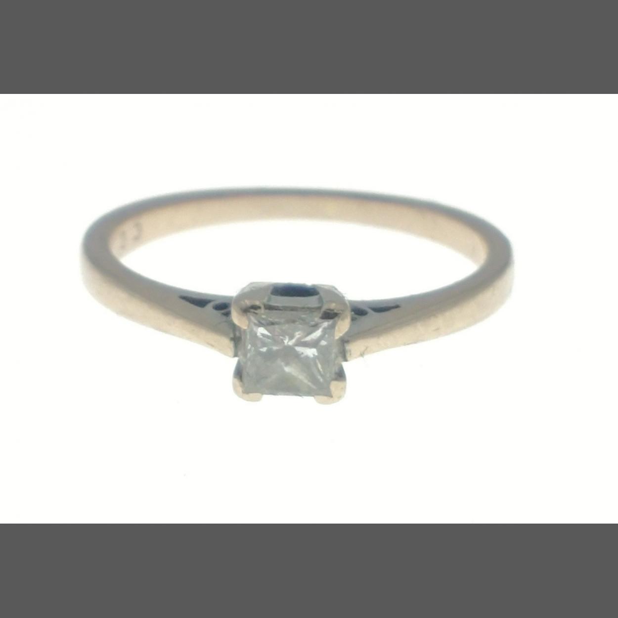 An 18ct stamped white gold diamond engagement ring with a rectangular-cut clear diamond (dimension 4mm x 3mm x 1mm depth approx) gross weight 2.425g ring size M