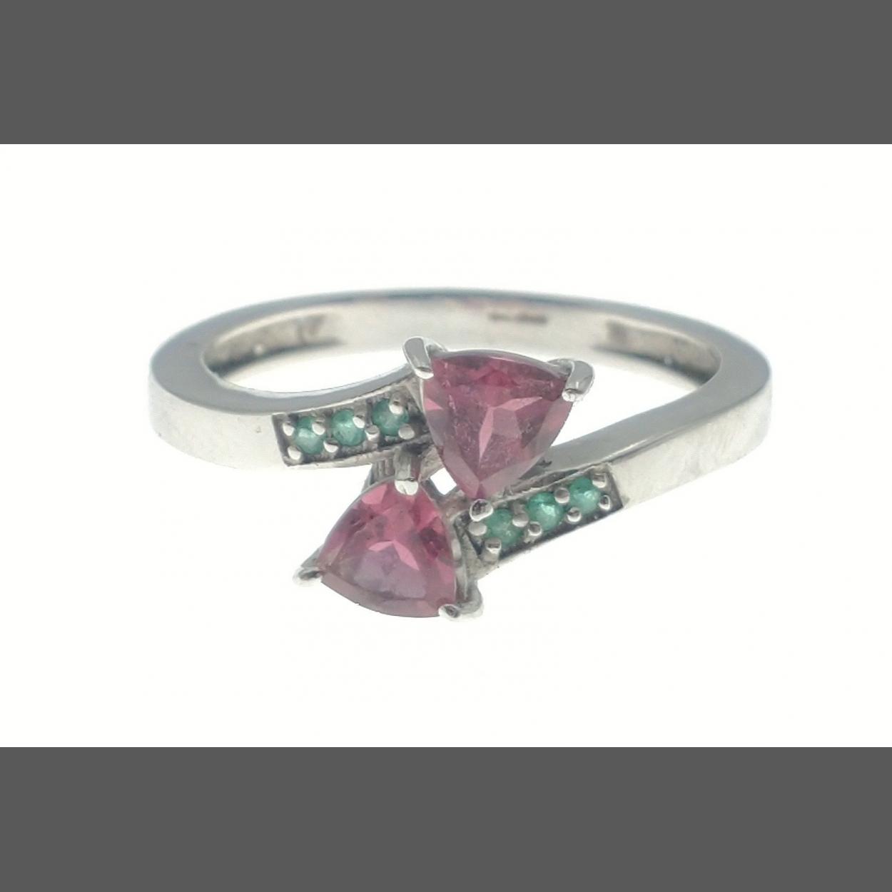 A 375 stamped white gold dress ring with two pink heart-shaped sapphires gross weight 2.41g approx