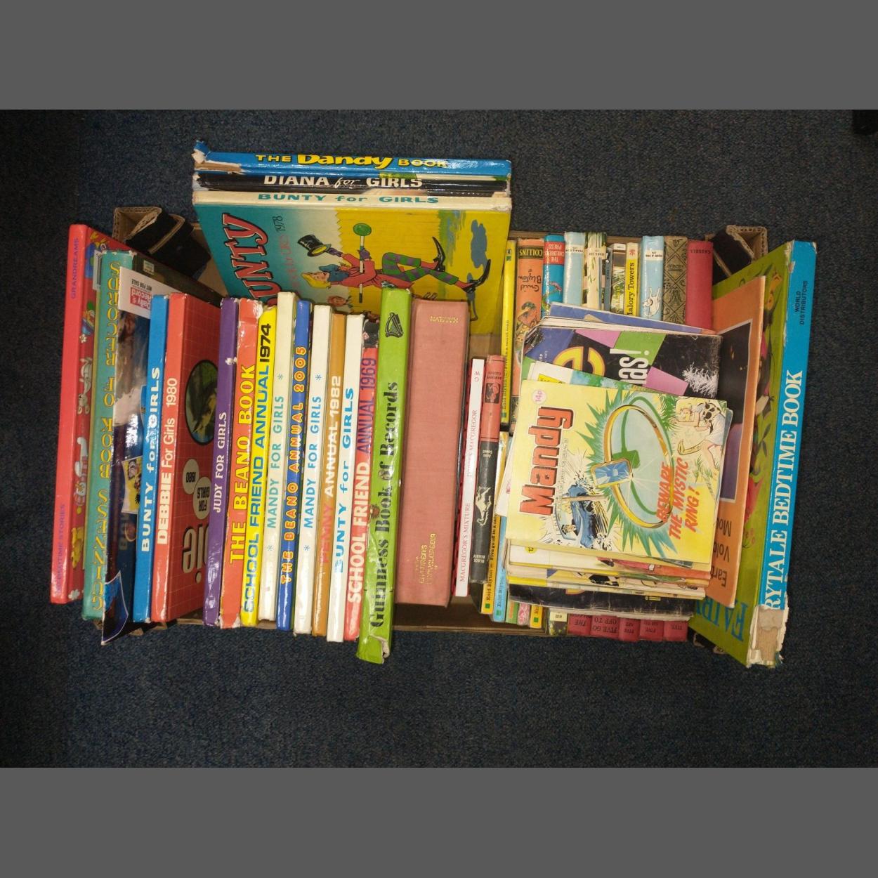 Children's books galore including Enid Blyton's famous five, and annuals including Bunty, Mandy, Judy, the Beano, the Dandy etc and a quantity of Picture Story Library for Girls