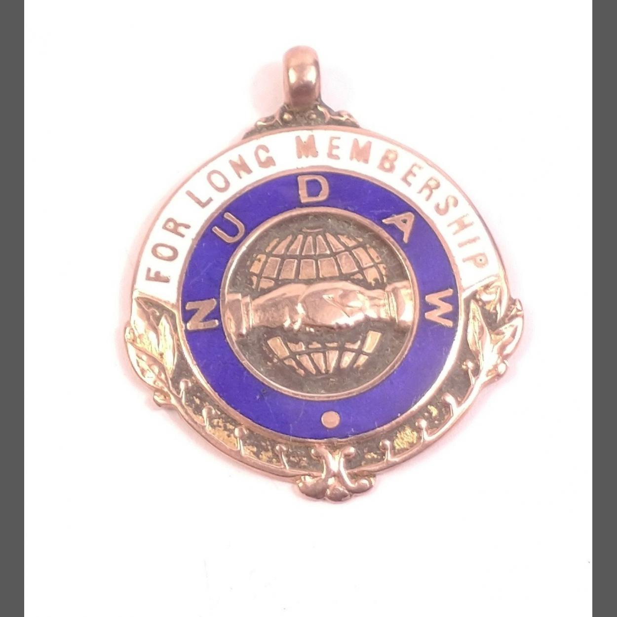 1934 9ct Gold and enamel fob. NUDAW National Union of Distributive and Allied Workers Union Executive Council inscription. Weighs 6g