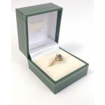 Gold 9ct stamped CZ ring. Size J. Weighs 1.2g approx. In local jewellers box.
