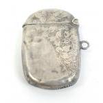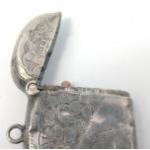 Pretty little bright cut silver Vesta case with two original matches. Hallmarked maker T.H. Birmingham 1906. A little worn but hinge intact and a lovely little survivor. Weighs13g approx