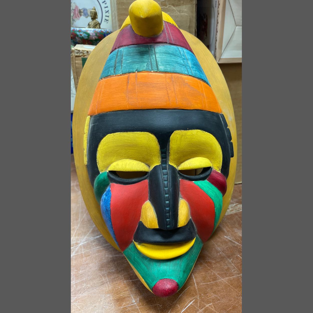 A colourful hand painted and UNUSUAL African native balsa wood decorative face mask - dimensions 35cm height x 25cm width approx