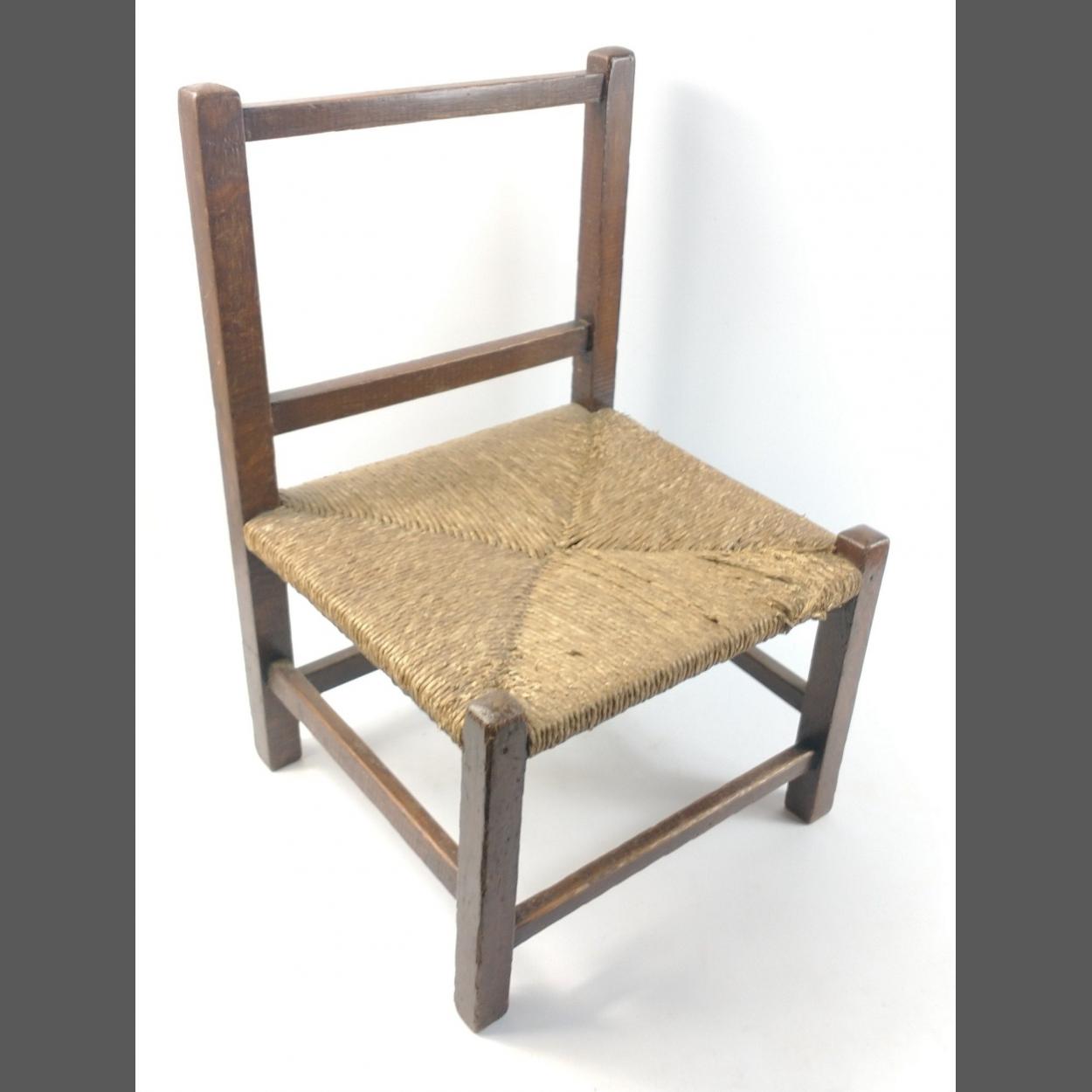 A child's wooden chair with a woven seat approx 50cm tall, seat measures 33x32cm