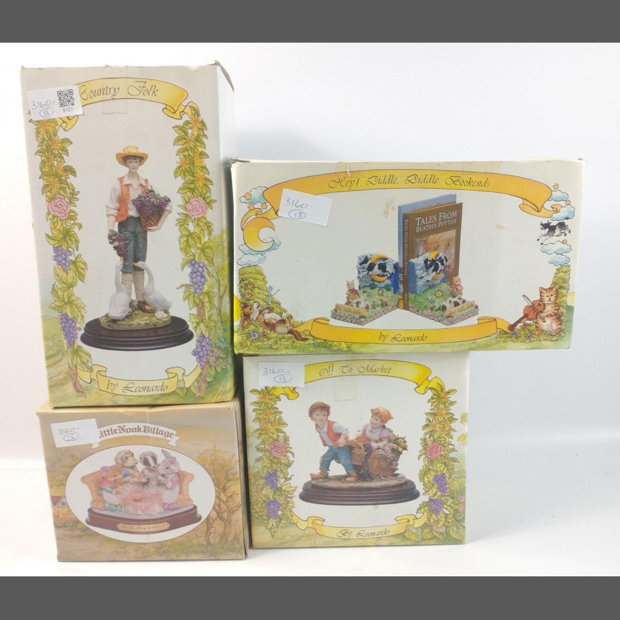 From the LEONARDO COLLECTION - boxed figurines- Country Folk, Hey, Diddle, Diddle Bookends, Off to Market and The Tea Party