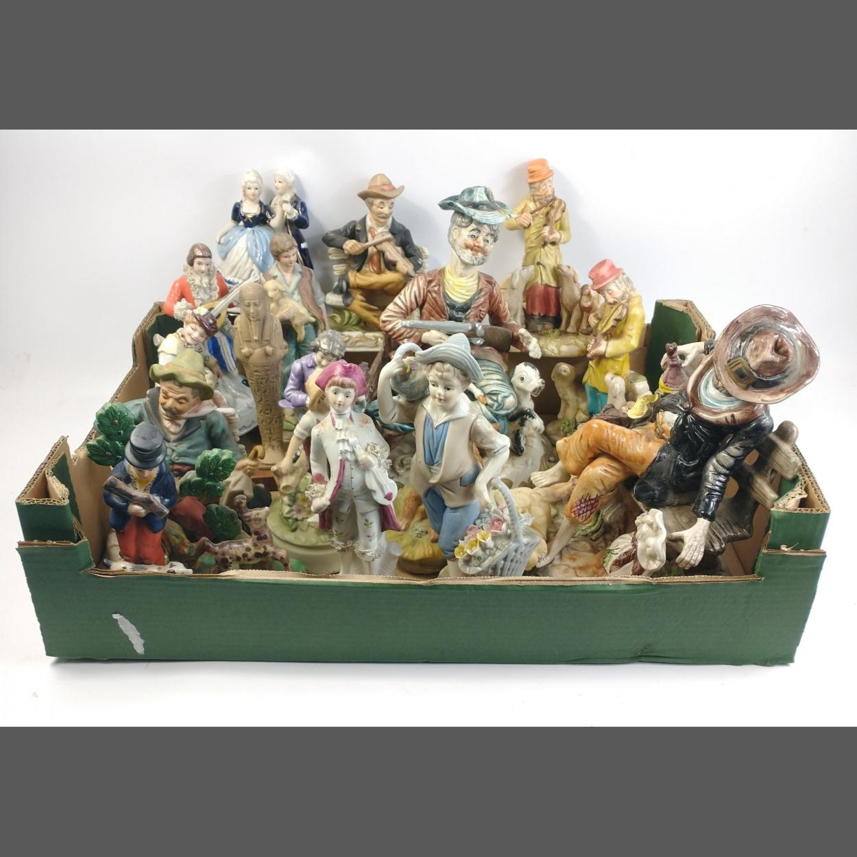A box of ceramic ornaments to include two very large CAPODIMONTE figures