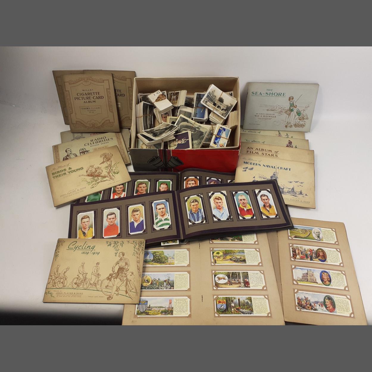 A super very well organised collection of cigarette and tobacco cards. Highlights include a well presented TTT complete album of 25 Typhoo Industries of the British Empire, a similarly well stored full set of 25 Interesting Events in British History, cards are loose in these albums. There are a number of complete albums including CYCLING 1839-1939. There is a furter original storage album containing a full set of WILLS FOOTBALLERS and a full set of 50 RAF Badges. Lot includes a decent quantity of loose full and part sets. A super collection for any Cartophilist.
