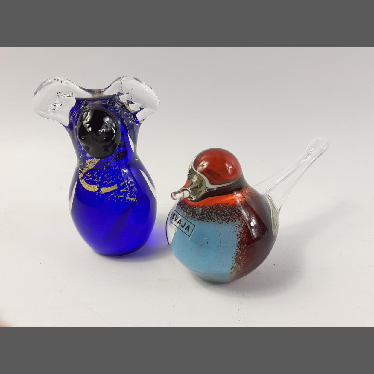 Two ornamental glass paperweights being an EAMONN VEREKER koala (9cm high) and a SVAJA bird (11cm long approx), no damage