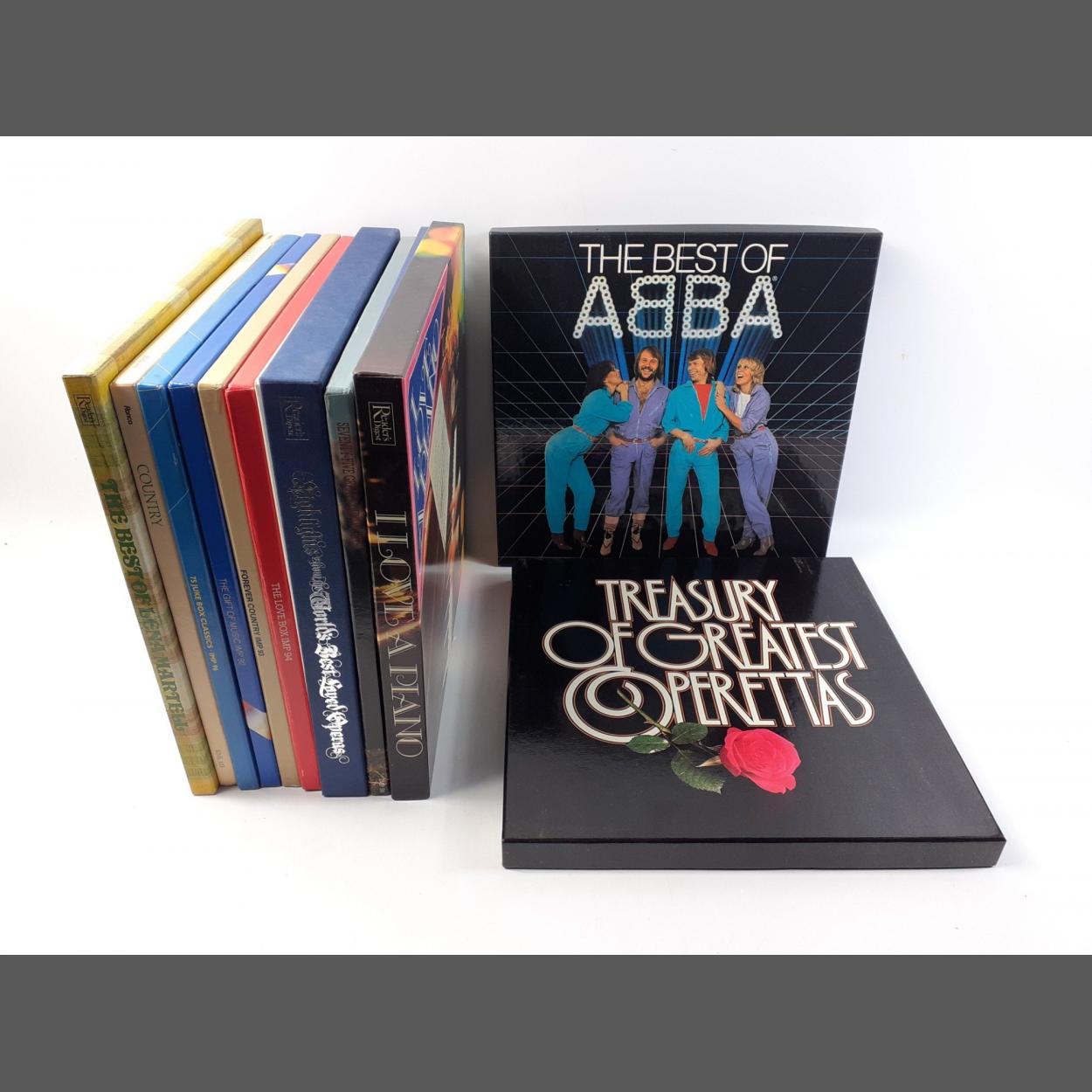 A collection of READER'S DIGEST boxed LPs to include such titles as THE BEST OF ABBA, 75 JUKE BOX CLASSICS, I LOVE A PIANO, 9 sets in total