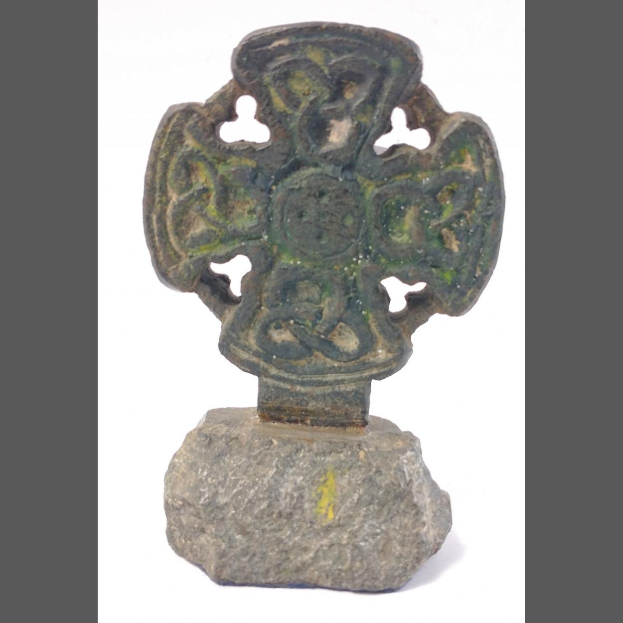 MYSTICAL - A small ornamental CELTIC stone cross - great patina! - dimensions 11cm tall x 7cm