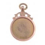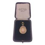 A gold fob medal with 9ct Hall Marks from Chester 1932 in Selkirk Jewellers box. Reputedly awarded to a member of the Kelso team who were winners of the 1933 Selkirk Rugby 7s. Measures 22mm in diameter and weighs 5.2g approx.