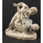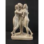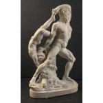 Pottery statues to include HERCULES AND LICHAS small statue 27cm height x 15cm also The Three Graces statuette dimensions 20cm tall x 13cm wide approx and lastly Wrestlers athletes statue dimensions 17cm tall x 17cm width approx - all made in GREECE