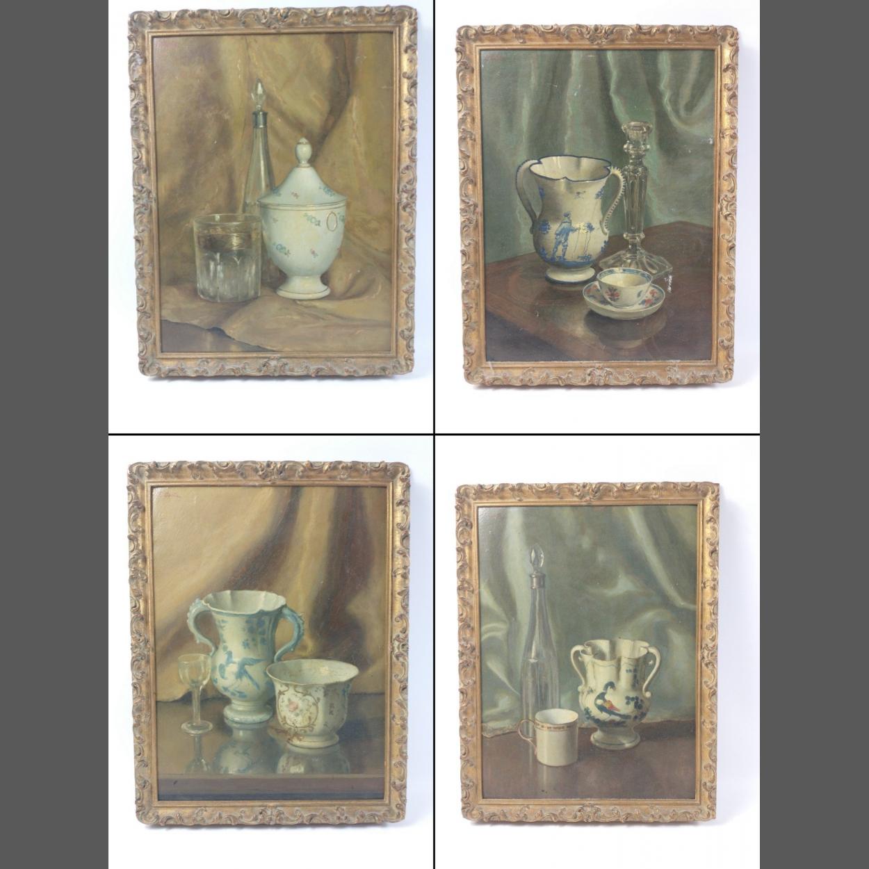 Four framed oil on board still life paintings signed 'E Costa', each measures 45x35cm