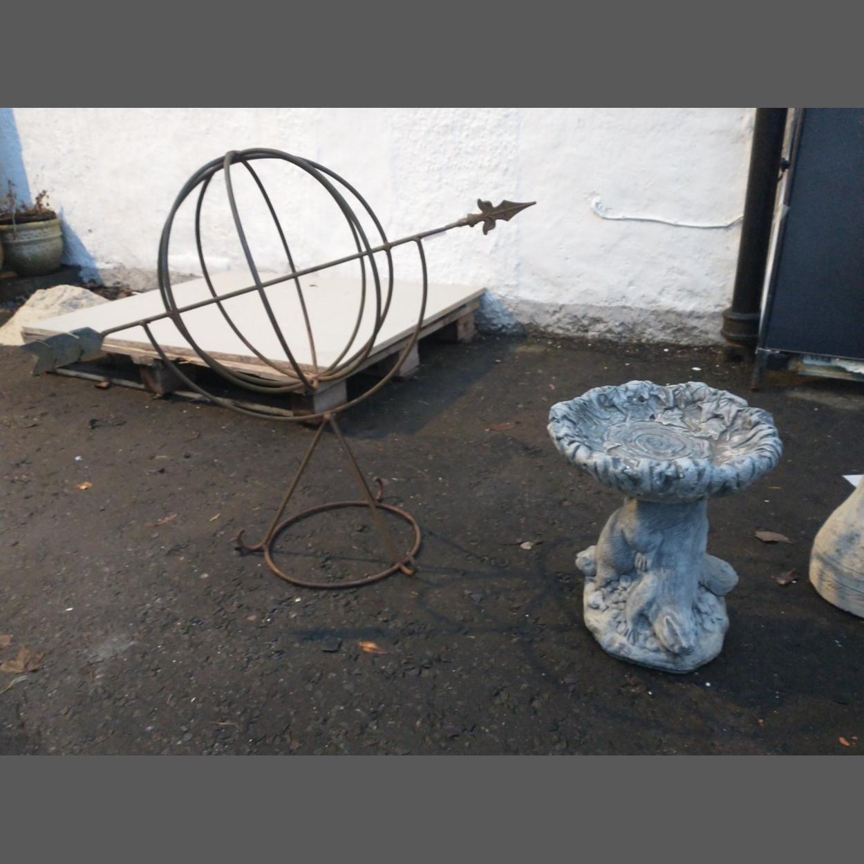 Providing a focal point of interest in a garden, this ARMILLARY standing 70 cm high with an arrow 85cm long plus a small birdbath 35cmx 28cm