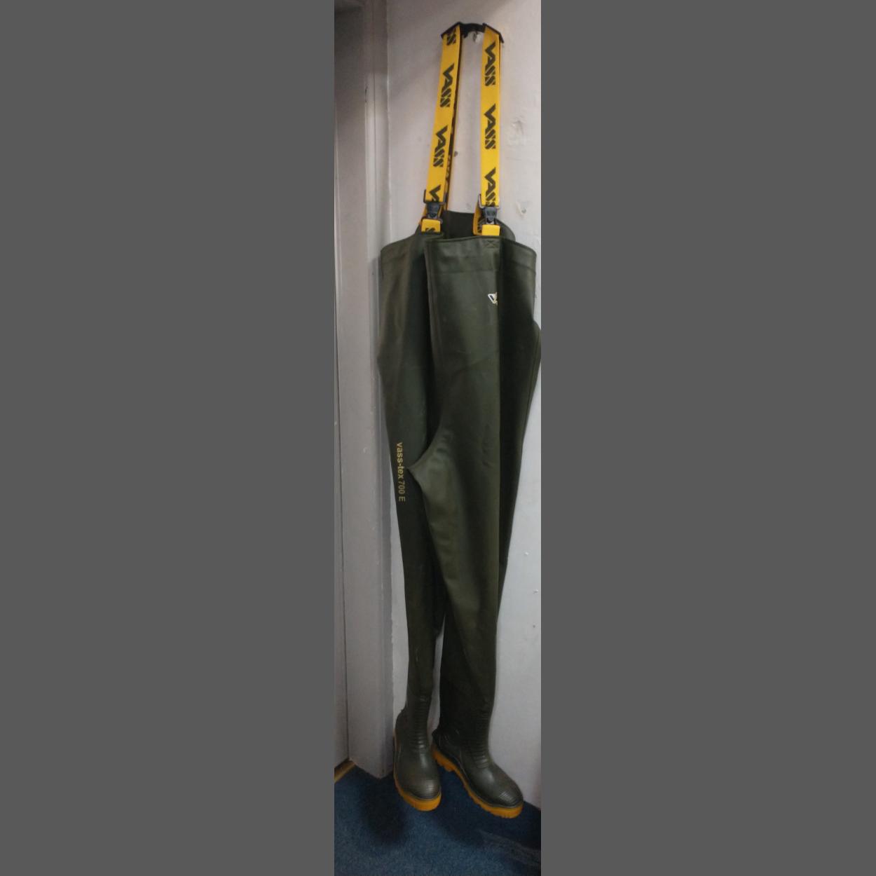 An as new pair of VASS-TEX 700-70E series CHEST WADERS carp game fishing gear size 10 (44), with studs