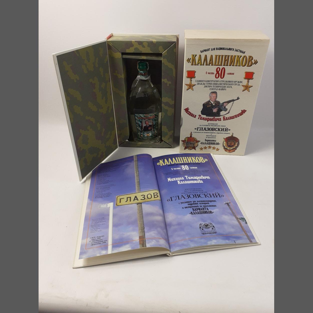 Extremely rare to find - a boxed bottle of KALASHNIKOV vodka presented to guests celebrating his 80th birthday, comes with book in slip case