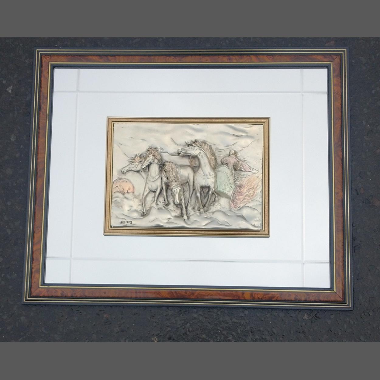 CREAZIONI ARTISTCHE - made from a sheet of 925 stamped sterling silver ARG Italian mirror high relief horse sculpture backed onto a wall mirror - dimensions 35cm x 26cm silver horse pic - dimensions of the large mirror its mounted on 68cm x 57cm approx