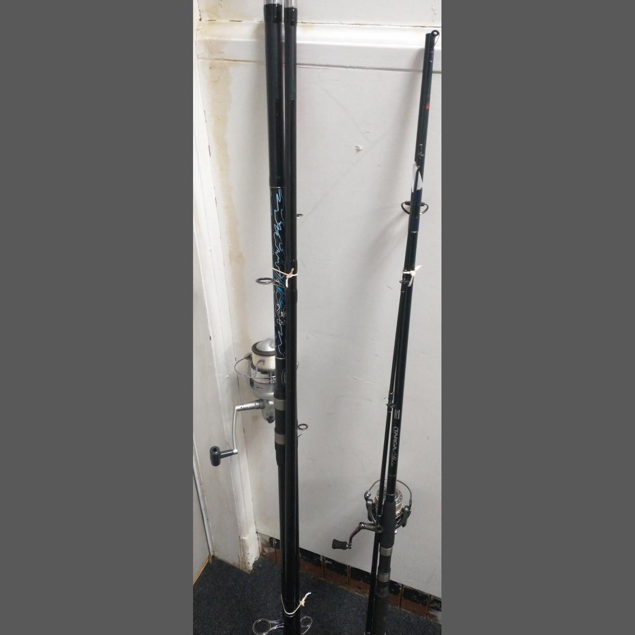 A super pair a Sea Fishing Roads with reels. A Shakespeare Targa Spin with a Nomura FW6000 reel and a Mitchell Surf 423 equipped with Daiwa BF5500G-3 reel. Both in excellent order.