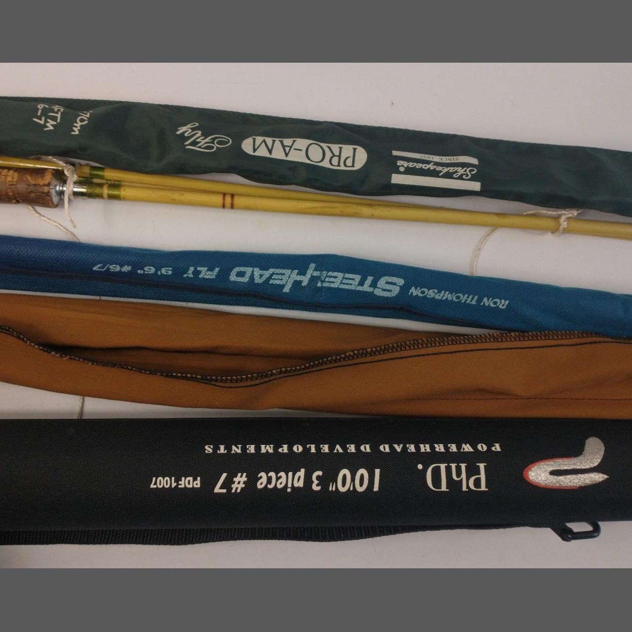 A collection of five fly rods in well cared for order. Mostly in covers. A nice starter collection.