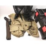 A great little collection of quality FISHING equipment to include a tackle box filled with gear, a jacket, a hand net, a landing net, a walking pole and a beach casting rod stand. A great lot.