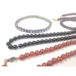 Three sets of VINTAGE coloured beads and an expanding bracelet with purple stone, one set with a lovely quality clasp marked 14K.