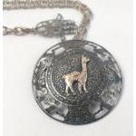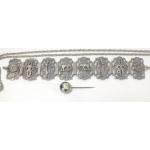 An intriguing lot including an unusual brooch (5cm dia approx) with a yellow metal llama to the centre, plus a white metal bracelet made of 8 sections with elephants and scimitars stamped with a star and crescent to the obverse and a lapel pin of a cute dog
