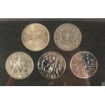 WESTMINSTER Mint celebrating the Jubilees of Queen Elizabeth ll - a Commemorative Crown Set to include a Limited Presentation Set of a 1953 Coronation Crown, a 1977 Queen's Silver Jubilee (25p) Crown, a 2002 Queen's Golden Jubilee £5 Crown, also a 2003 Queen's Coronation 50th Anniversary £5 Crown and lastly a 2012 Queen's Diamond Jubilee £5 Crown - within its original presentation case and original certificate of authenticity No 224/500 produced
