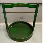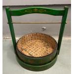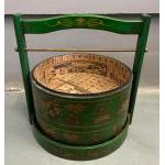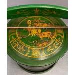 A HIGHLY DECORATIVE ORIENTAL green and gold painted lacquered with carry handle mock food carrier - unused item in storage
