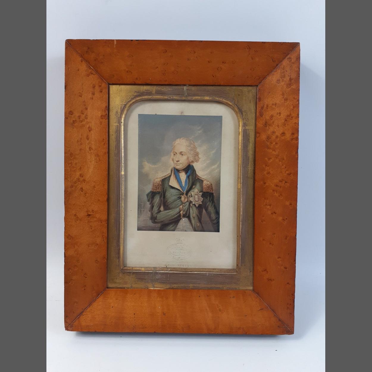 An original BAXTER colour print of LORD HORATIO NELSON in attractive older walnut solid frame. The print carries Baxters embossed mark to the bottom. The frame measures 26 x 20cm approx. A lovely original item ca. 1850 from the pioneers of colour printing.