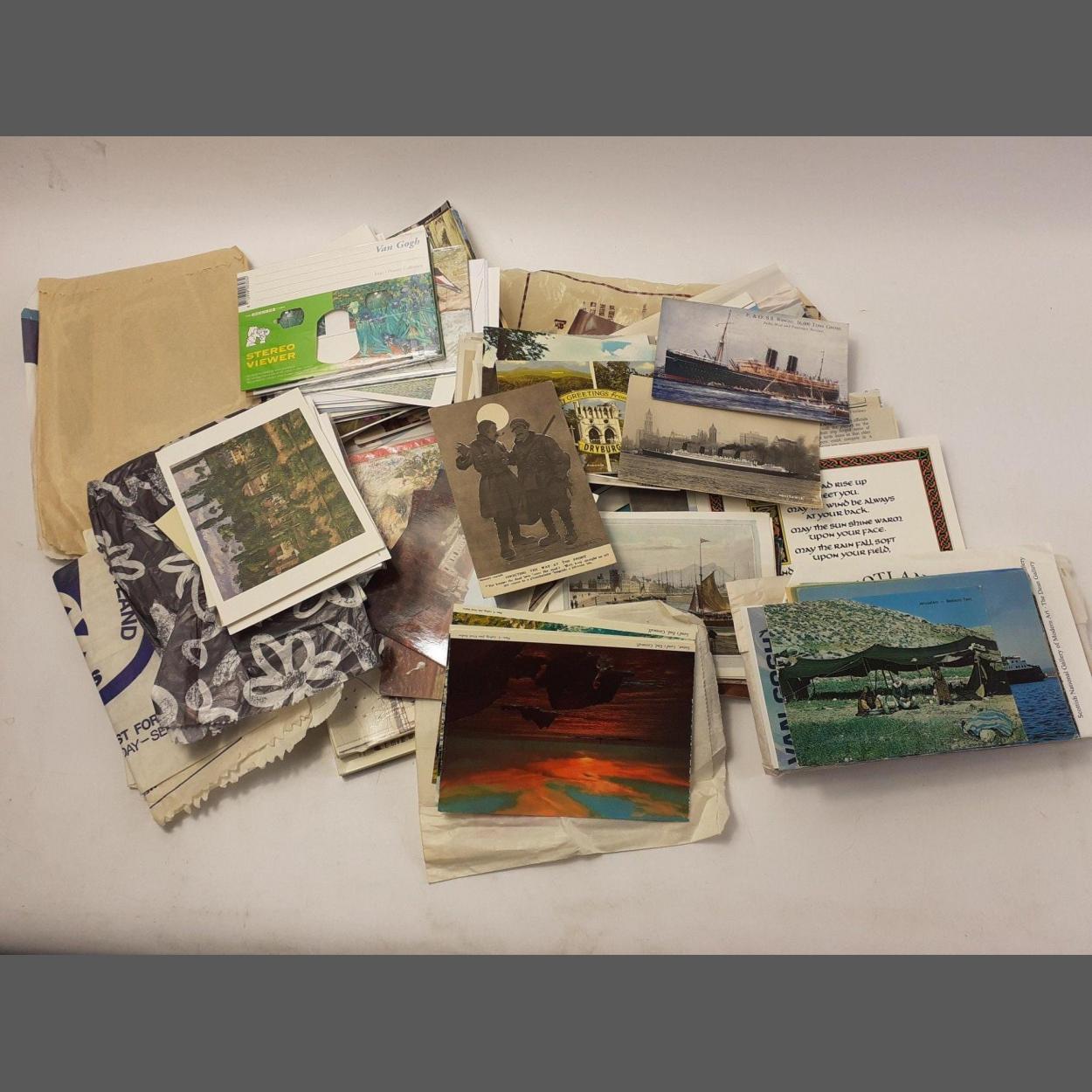 A quantity of mainly modern art and other postcards including a rather interesting postcard of liner AQUITANI and a BARNSFATHER WWI card.