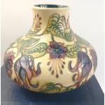 A squat MOORCROFT vase in its original box stands approx 17cm high, label to base reads 'Seconds £420.75'